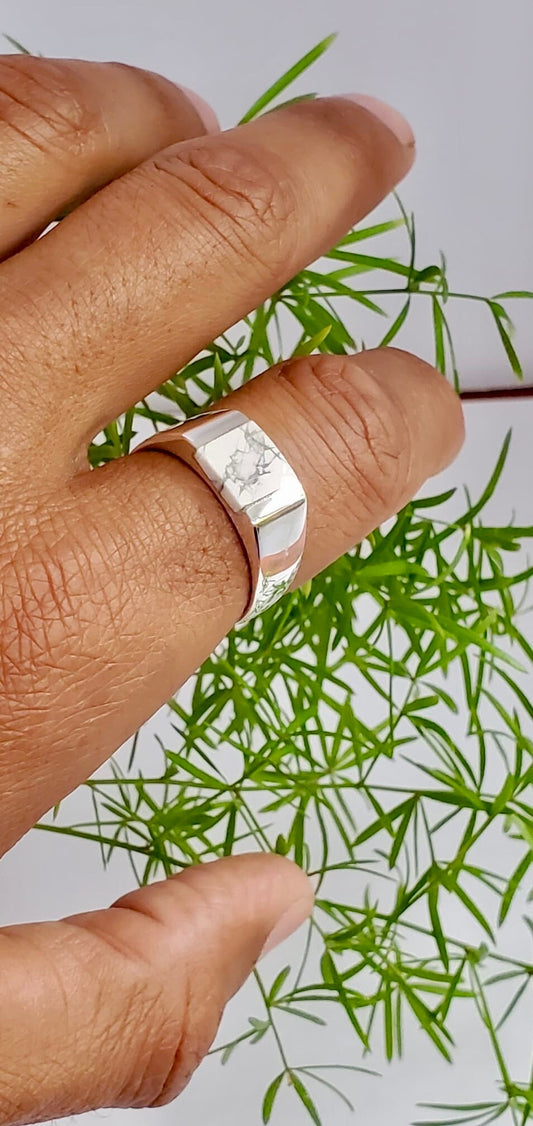 White Turquoise Sterling Silver Ring – Elegant Natural Stone, 9mm Face Height