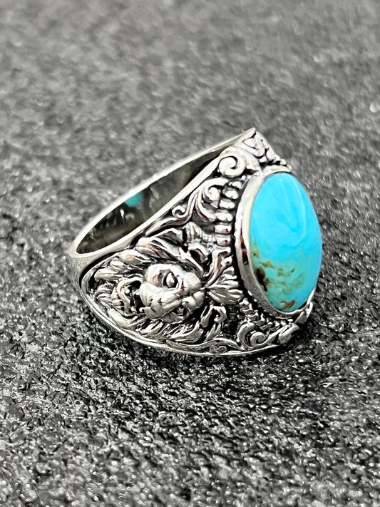 Turquoise Men's Ring, Sterling Silver Ring, 925 Stamped Ring, Signet Men's Band, Genuine Turquoise Stone for men