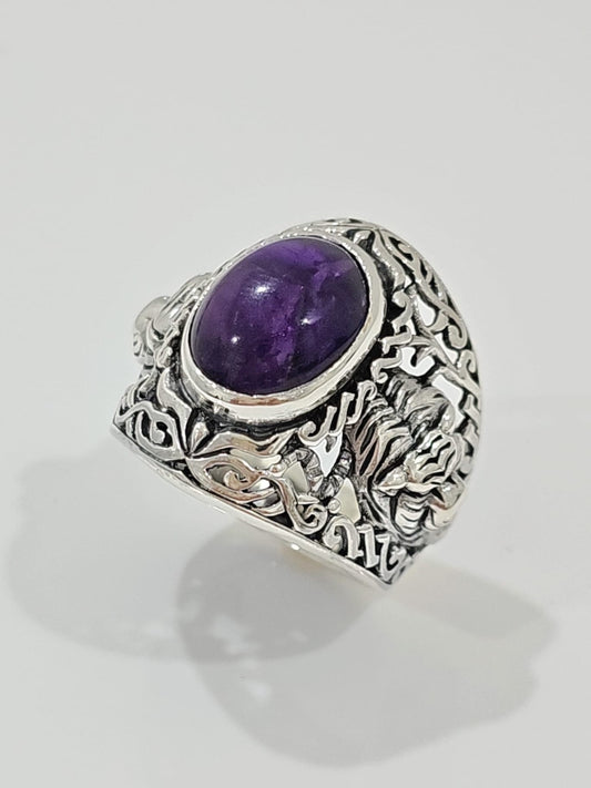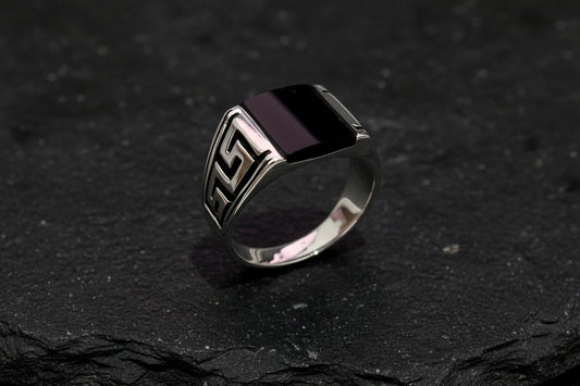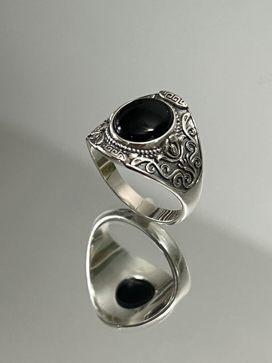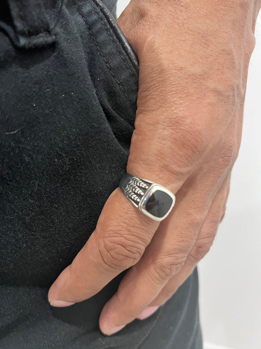 Leaves of 420 Onyx Stone Men's Silver Ring