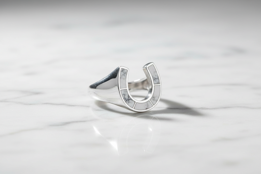 Horse Shoe Ring White Lucky Horseshoe Equestrian Ring