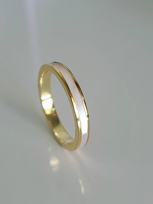 Gold Mother of Pearl Band Ring – 18K Gold Plated Over 925 Sterling Silver, High Polish Finish, Elegant Women’s Ring