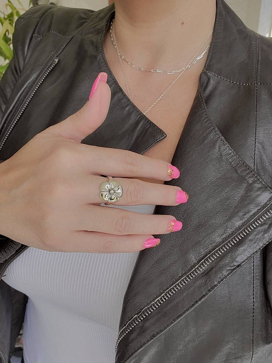 Paua Shell Tungsten Sea Opal Ring Men's Ring