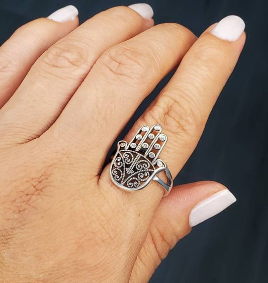 Sterling Silver Hamsa Ring, 925 Hamsa Ring, Protection Ring, Women's Hamsa Ring, 925 Ring, Vintage Ring