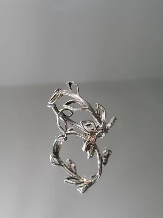 Sterling Silver Leaves Ring, Leaf Women's Ring, Olive Ring, Statement Band, 925 non tarnish Silver, sizes 3-13