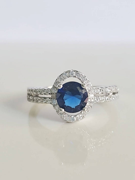 Sterling Silver Halo Sapphire Ring, Promise Ring, Engagement Ring, Gift for her, Anniversary Gift, 925 Stamped