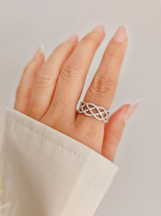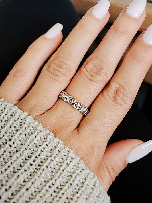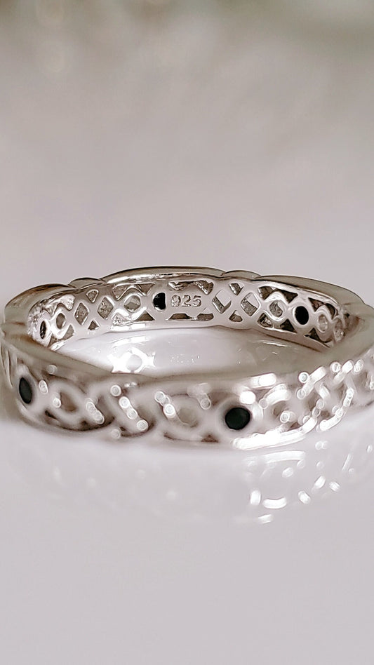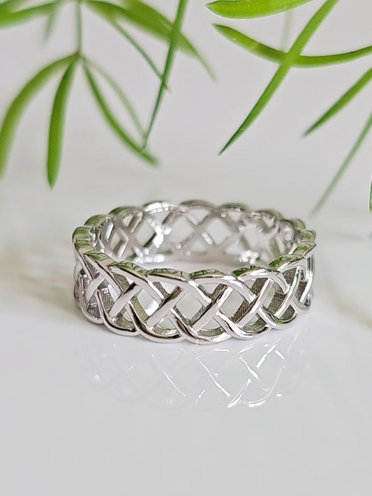 Celtic Eternity Band 925 Sterling Silver 3.2mm Braided Ring Rhodium Plated