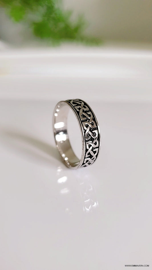 Celtic Woven Ring 925 Sterling Silver 7mm Unisex Wedding Band Oxidized
