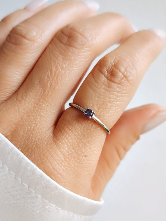 Dainty Genuine Amethyst Sterling Silver Ring – 925 Silver, Prong Set, High Polish, Bride, Promise, Anniversary & Engagement Ring