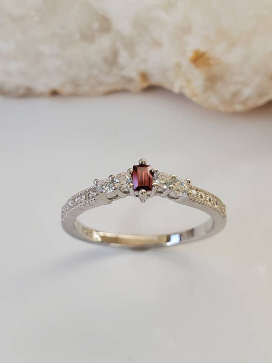 Garnet Anniversary Engagement Band