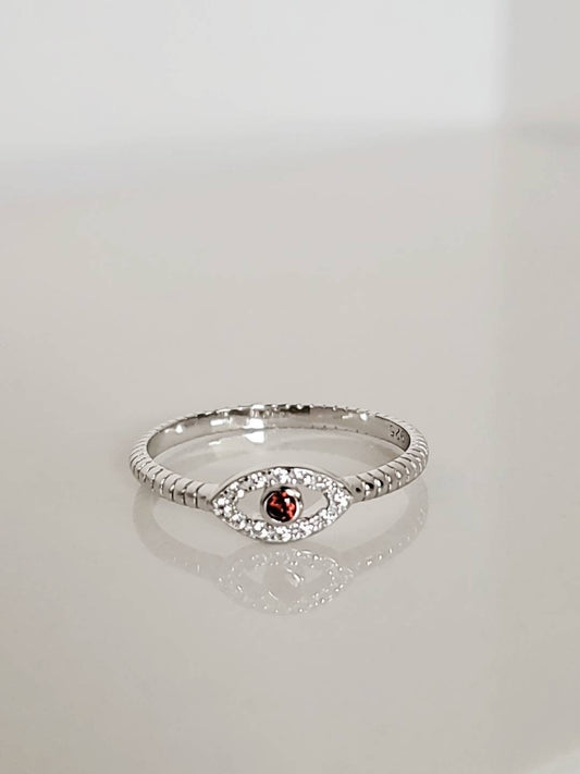 Garnet Eye Sterling Silver Women Ring