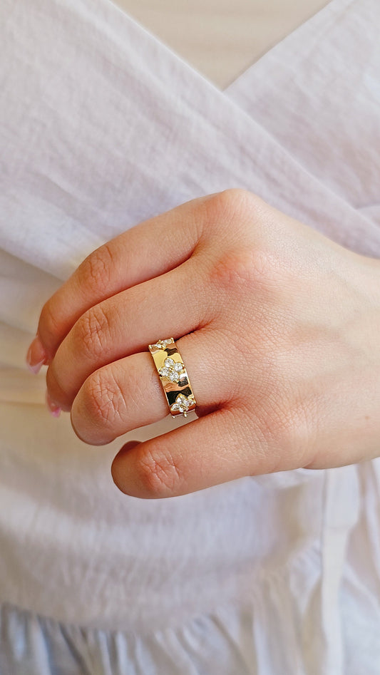 Gold Clover Ring, Clover 925 Band, Thumb Ring