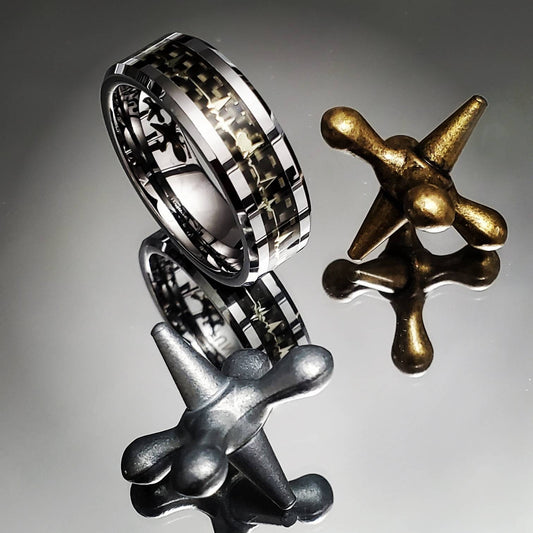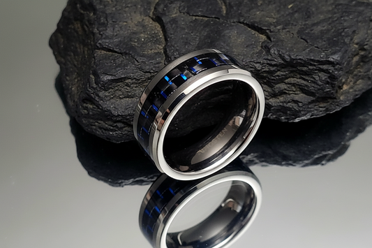 Tungsten Men's Ring, 8mm Ring With Dark Blue Carbon Fiber Inlay, Men's Statement Band
