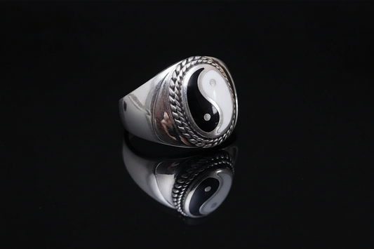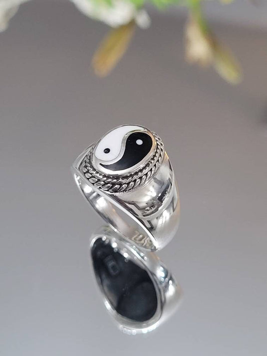 Yin Yang Signet Men Ring, Sterling Silver Ring, 925 Stamped Ring, Signet Men's Band, Genuine Stone for men