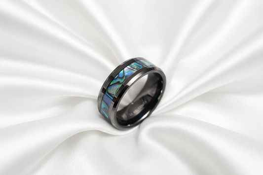 Paua Shell Tungsten Sea Opal Ring Men's Ring
