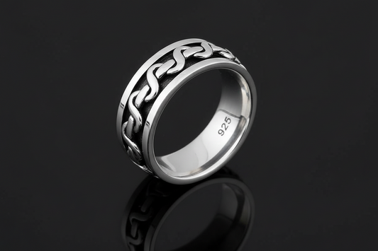 Sterling Silver Vine Men's Spinner Ring, 7.2mm Engagement, trendy