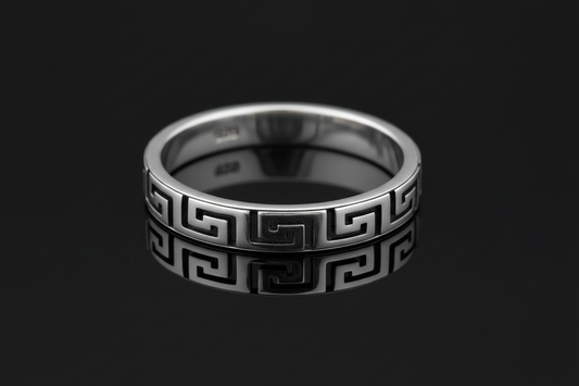 Sterling Silver Men's Ring, Durable Mens Band, Greek design Band, Wedding Statement Ring, Gift for him/her, Unisex