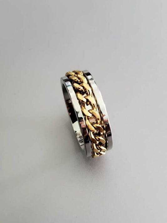 Two Tone Chain Spinner Ring, Engagement Rings, Fidget Friendly