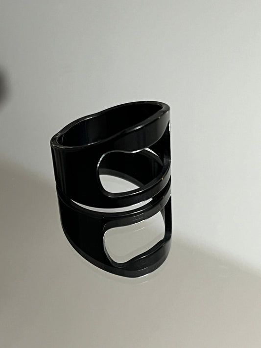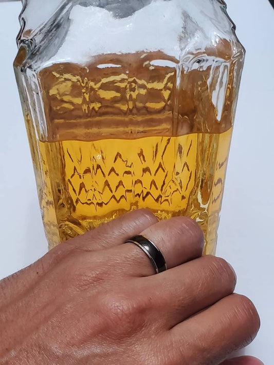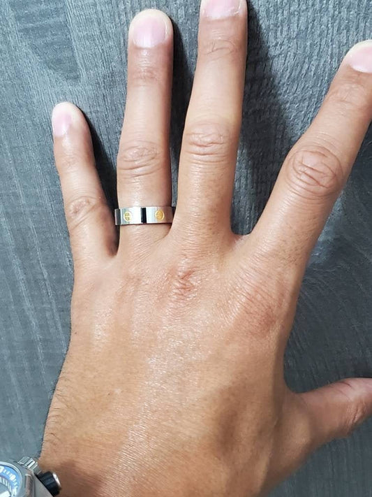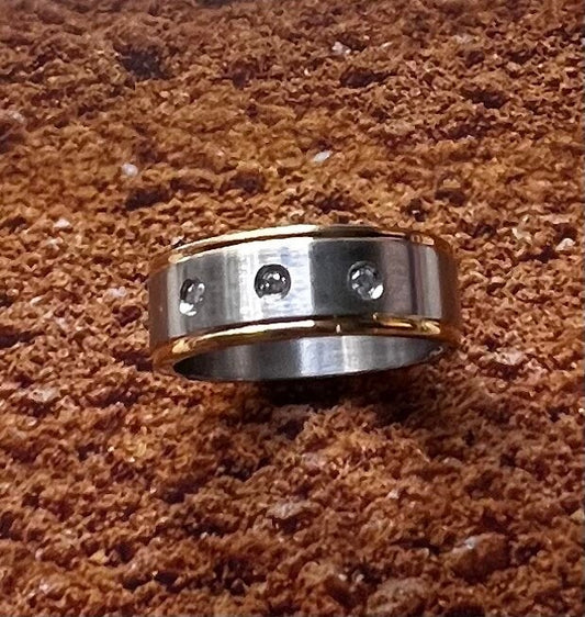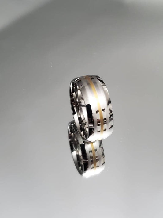Gold Stripe, Silver, Black Stainless Ring, 8mm Band,