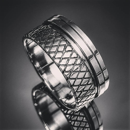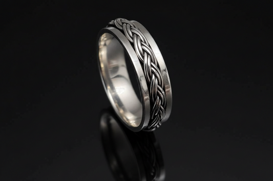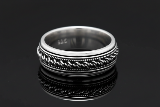 Meditation Spinner Ring Sterling Silver Men's Ring 8mm Braided Spinner Band