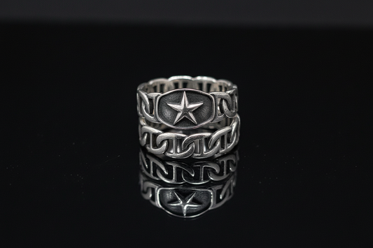 Shooting Star Chain Ring, Unisex, Linked Band, 10mm Non tarnish, Gift for him/her