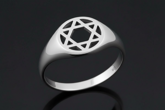 Star of David Ring, Men's Sterling Silver Black Agate Stone Ring, Gift for him, 925 Silver Band