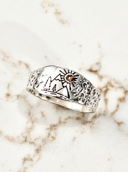 Sun, Mountain and Trees 8mm Band