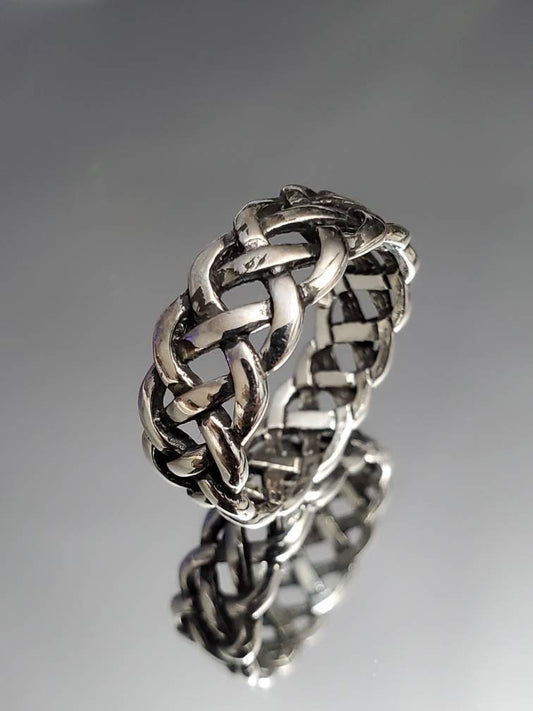 Woven Silver Band, Men's Sterling Silver Ring, Wedding Band, 925 Stamped, Braided Ring