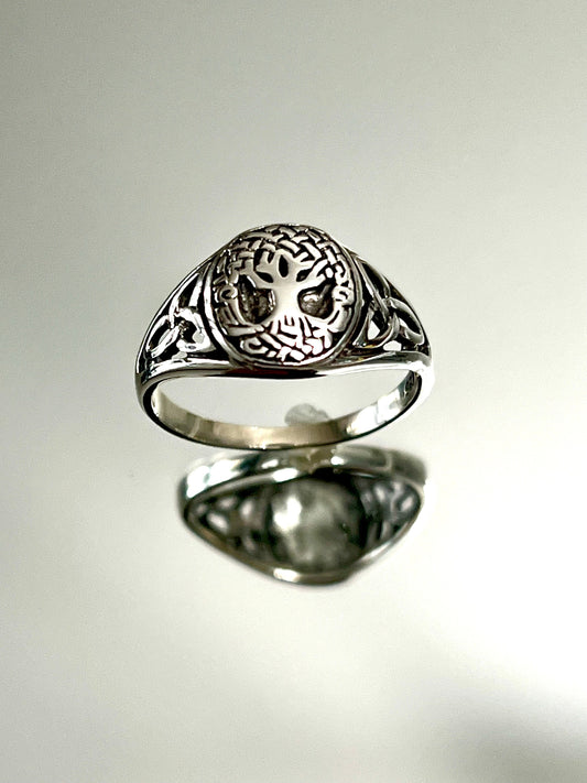 Sterling Silver Tree of Life Men's Ring, 12mm Face, Engagement, trendy