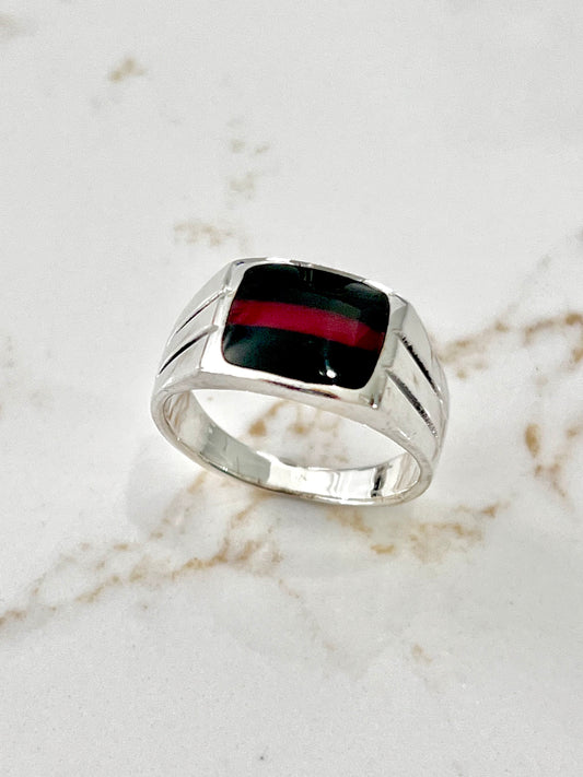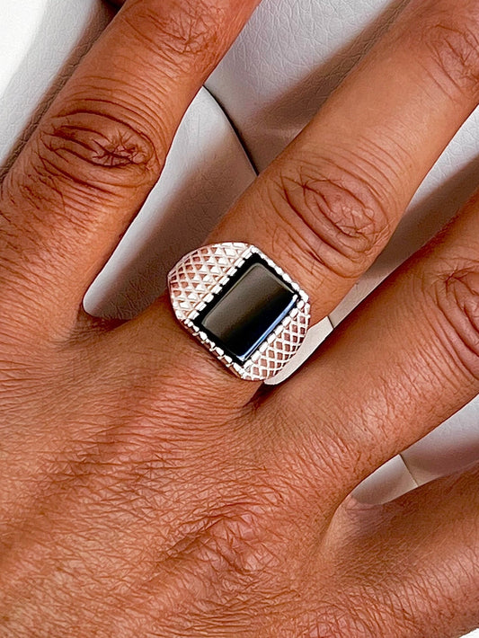 Square Signet Black Onyx Ring, Sterling Silver Ring, Men's Band, Engagement Wedding Ring, 925 Silver