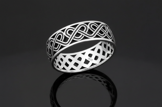 The Celtic Men's Ring is a stunning 7mm sterling silver band, specifically designed for men. This ring makes for an ideal gift.