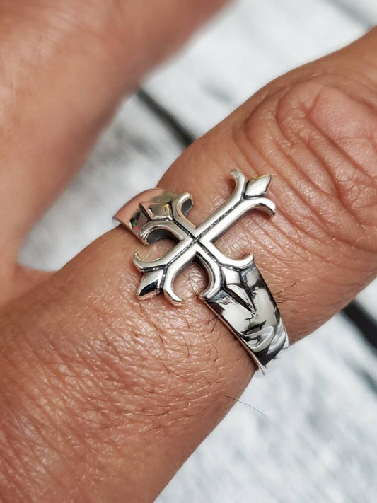 Sterling Silver Cross Ring, Cross Medieval Ring Men's Ring, Gift for Men, Biker's Ring