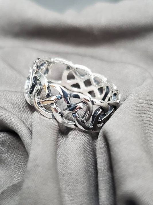 Celtic Woven Ring 925 Sterling Silver 7mm Unisex Wedding Band Oxidized