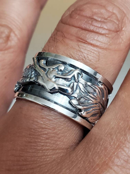 Sterling Silver Tree of Life Men's Ring, 11mm Wedding Band, Engagement, trendy