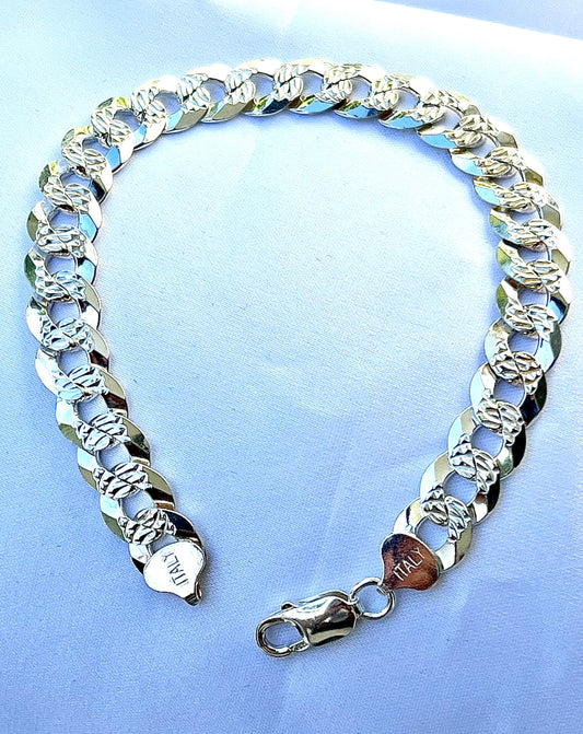 Chic Sterling Silver Men's Bracelet Paved Curb Flat