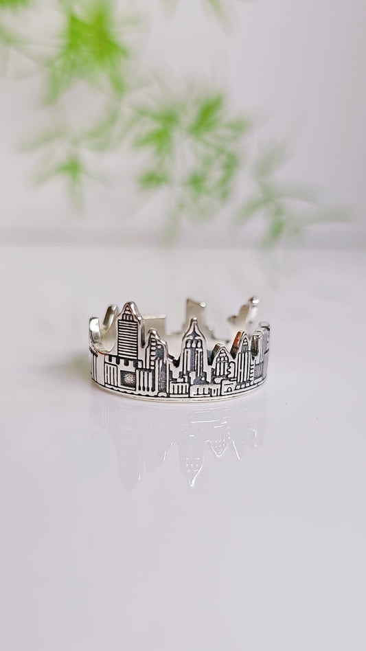 Sterling Silver Skyline Men's Ring, 12mm Face, Engagement, trendy, gift for him