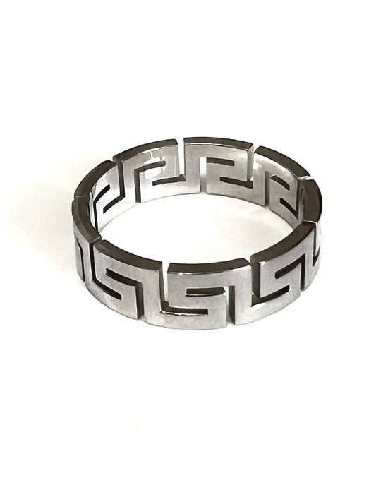 Unisex 6mm Greek Key Ring – PVD Gold or Silver Band, Timeless Durable Wedding & Daily Wear Jewelry