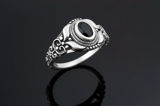 Onyx Sterling Silver Ring for Men: Traditional Band