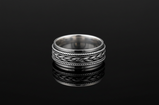 Braided Rope Sterling Silver Spinner Ring: 8mm Oxidized Wedding Band