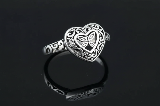 Inner Outer Love Sterling Silver | Oxidized Heart Ring for Women | Nature Inspired Vine Band