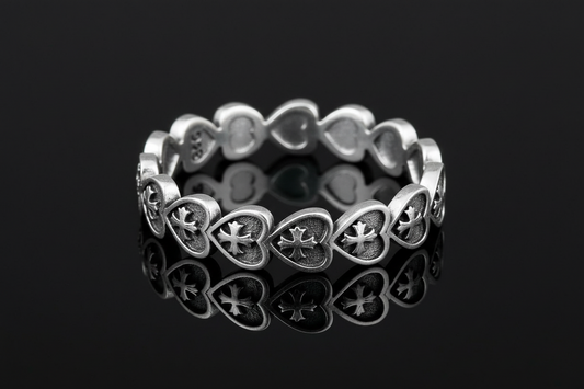 Oxidized Sterling Silver Heart Cross Ring: Medieval Style Band