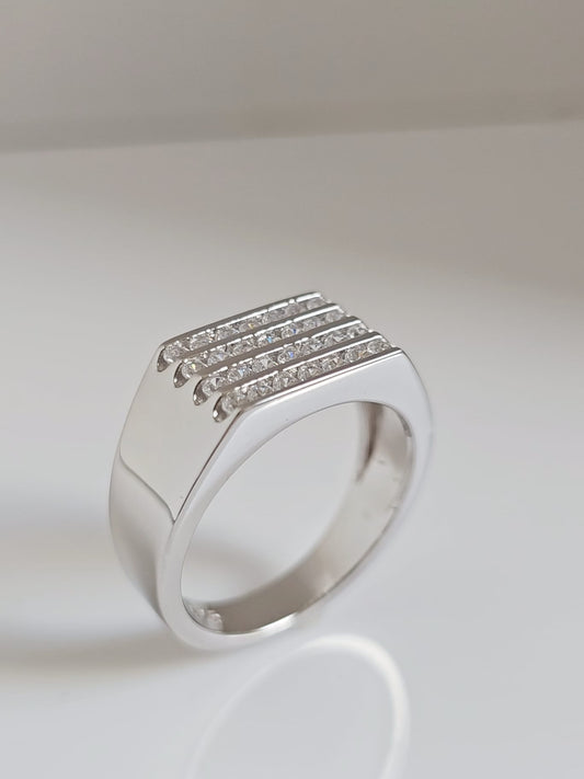 Classy 28 Stone Men's Ring – Solid 925 Stamped Sterling Silver, Art Deco Signet Ring