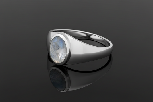Sterling Silver 925 Unisex Moonstone Ring 9.6mm Simple Elegant Design