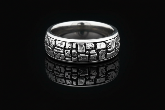 Stonework Sterling Silver Band: Rugged Men's Wedding Ring