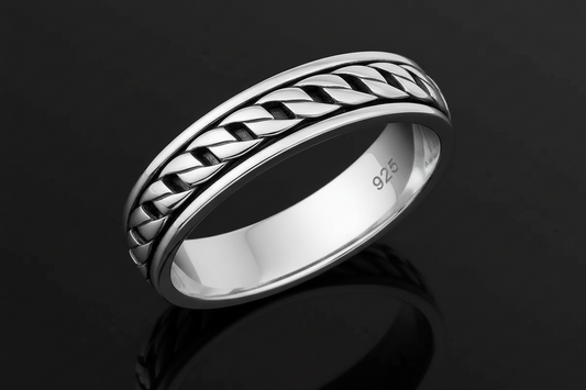Woven Braid Sterling Silver Men's Ring - 6mm Wedding Band