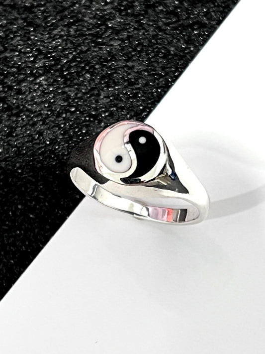 Yin Yang Balance Ring in Sterling Silver with Onyx & White Opal – Modern Symbolic Statement