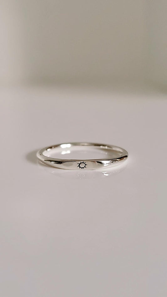 Dainty Sterling Silver Sun Ring: Minimalist 925 Stamped Band