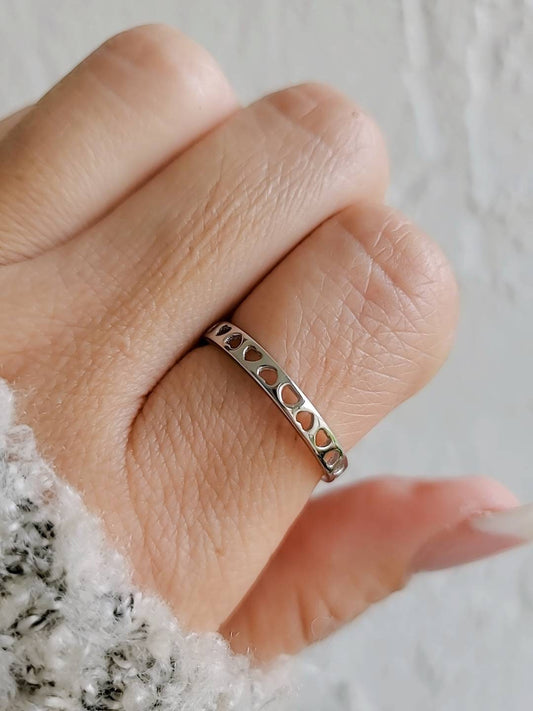 Sterling Silver Heart Band, Thin Minimalist Women's Band, 925 Ring, Wedding Band, Promise Ring, Anniversary Gift