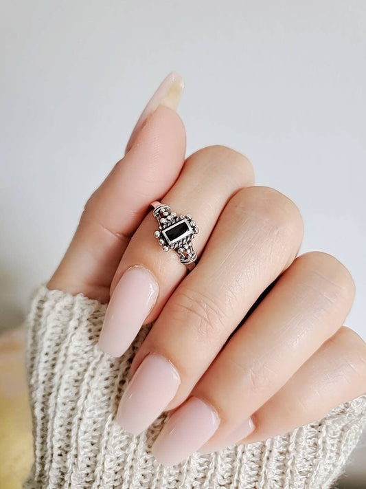 Sterling Silver Onyx Ring, Women's Ring, Bali Onyx Ring, Minimalist Ring, Genuine Onyx, 925 Stamped, Black Stone Ring, Gift ideas for women