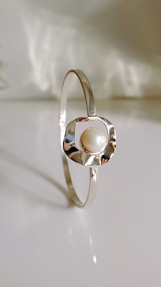 Sterling Silver Fresh Water Pearl Halo Bangle, Dainty Pearl Bracelet, 925 Sterling Silver Bangle, Women Bangle Bracelet