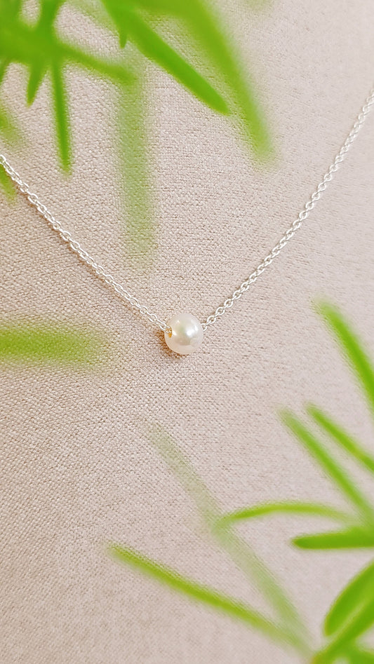 Sterling Silver Single Pearl Necklace, Floating Delicate Pearl Necklace, Simple Pearl Pendant, Bridesmaid, Mother's Day, Anniversary Gift